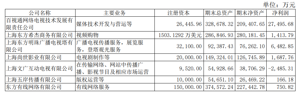 其全資控股子公司(100%控股)百視通網(wǎng)絡(luò)電視技術(shù)發(fā)展有限責(zé)任公司上半年凈利潤(rùn)為2.75億元,主營(yíng)業(yè)務(wù)收入為8.62億元;其控股子公司(51%控股)東方有線網(wǎng)絡(luò)有限公司為上海有線電視網(wǎng)絡(luò)運(yùn)營(yíng)商,上半年凈利潤(rùn)為750.82萬元。