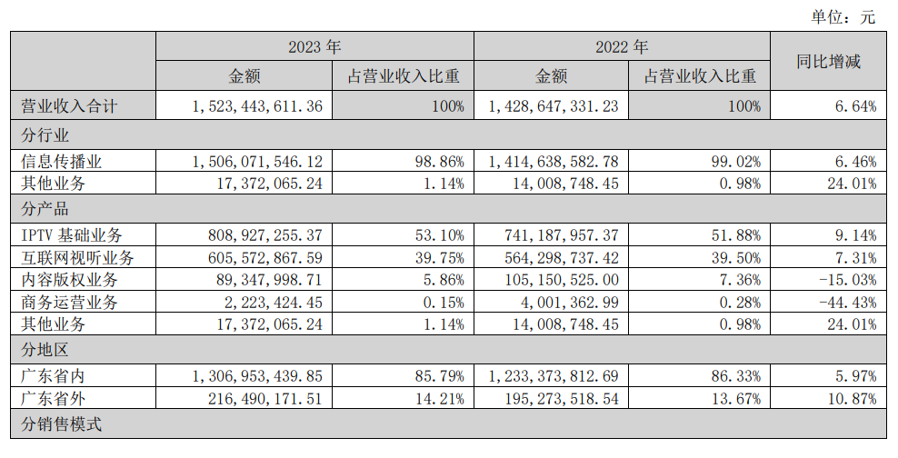 廣東新媒股份2023年凈利為7.08億元,IPTV業(yè)務(wù)占比為53.10%-DVBCN