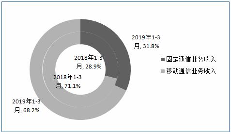 圖2 2019年一季度固定和移動業(yè)務(wù)收入占比情況