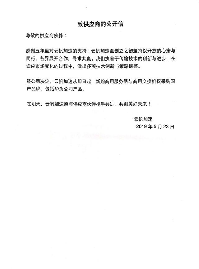 眾所周知,由于國(guó)際形式的“打壓”,最近的華為遇到了“風(fēng)口浪尖”,面臨全球合作企業(yè)的斷供以及圍剿,華為面臨著不小的危機(jī)。而就在這時(shí),不少國(guó)內(nèi)企業(yè)都開始聲援華為,其中也包括內(nèi)容分發(fā)網(wǎng)絡(luò)(CDN)行業(yè)。云帆加速發(fā)布公開信,從即日起,新購(gòu)商用服務(wù)器與商用交換機(jī)僅采購(gòu)國(guó)產(chǎn)品牌,包括華為公司產(chǎn)品。